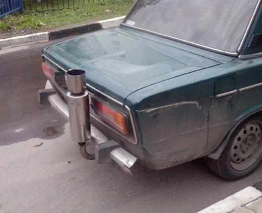 Sáng tạo độc đáo khi thay vì nối ngang thì ống xả xe hơi này lại hướng lên trên để chống ngập nước.