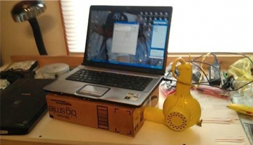 Tận dụng chiếc máy sấy tóc cũ để làm máy tản nhiệt cho laptop.