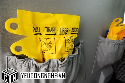 Trang bị phao cứu hộ, hướng dẫn an toàn bay, túi nôn... đầy đủ phía trước ghế ngồi mỗi hành khách.