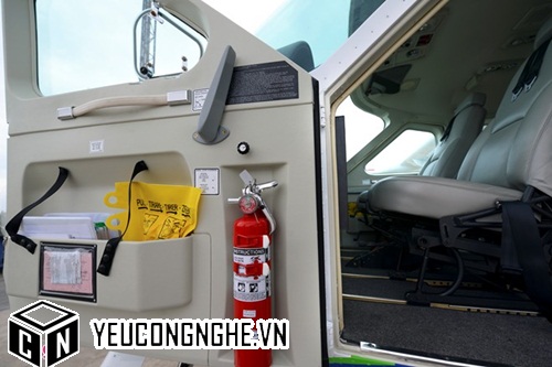 Máy bay được trang bị đầy đủ các thiết bị phòng cháy, hộp y tế, phao cứu hộ, bản đồ... hai bên cửa khoang lái.