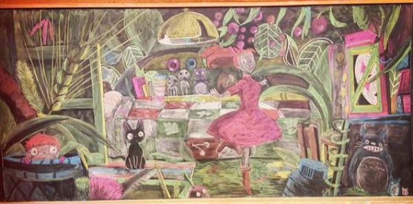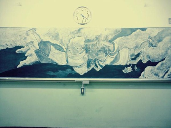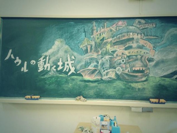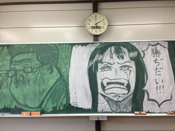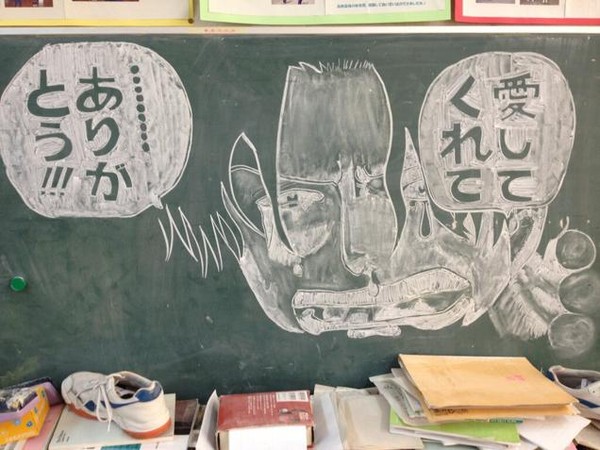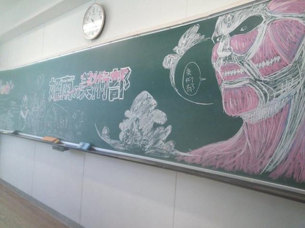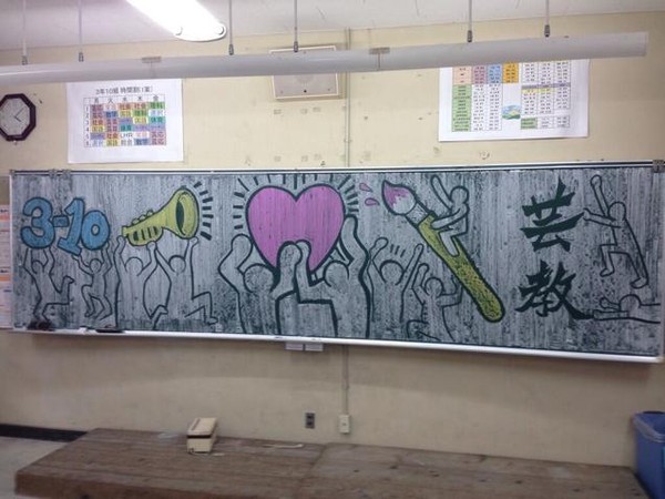 Tại Nhật, có nhiều thứ để bạn có thể làm hơn là học tập tại trường lớp. Một trong số đó là thể hiện những bức tranh tuyệt vời trên bảng bằng phấn. Hầu hết các bức tranh đều được vẽ sau giờ học và sau giờ hoạt động của các câu lạc bộ trong trường. Tuy nhiên, cũng có một vài bức tranh cũng phải thực hiện trong suốt một ngày mới có thể hoàn thành được.