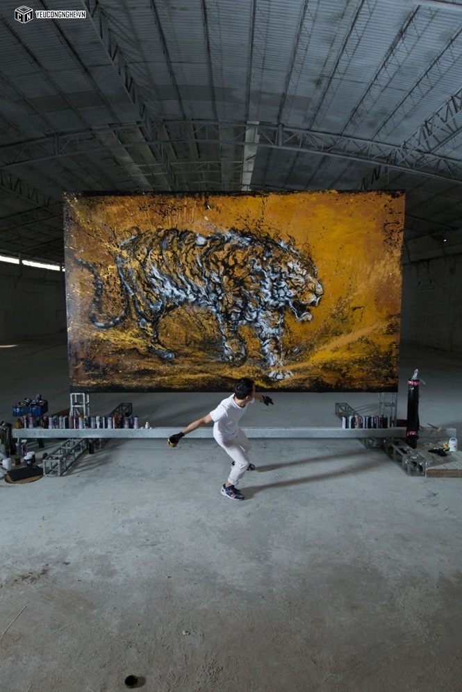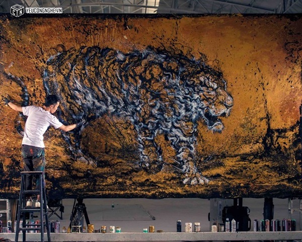 Hua Tunan thể hiện văn hóa châu Á bằng cách tái hiện hình ảnh một con hổ. Ông sử dụng kỹ thuật phun màu trên bề mặt khung và kết quả thu lại thật tuyệt vời.