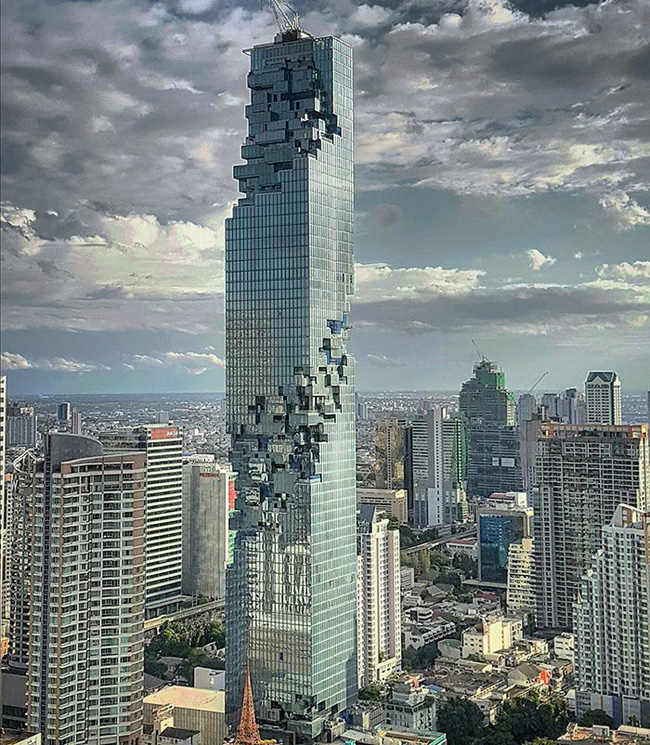 Được thi công trong vòng 5 năm, có chiều cao 314m với 77 tầng, MahaNakhon chắc chắn sẽ là tòa nhà cao nhất đất nước Thái Lan. Ngoài việc sở hữu chiều cao kỷ lục, MahaNakhon còn mang ý tưởng thiết kế vô cùng mới lạ - các mặt tiền bị khuyết giống ngọn tháp Lego bị mất vài viên gạch. Được biết, đây là ý tưởng thiết kế của công ty kiến trúc đa quốc gia Buro Ole Scheeren.