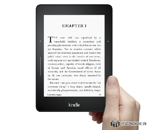 Amazon đã vừa công bố chiếc máy đọc sách mới của mình với tên mã "Voyage" được tích hợp màn hình 6 inch đạt mật độ điểm ảnh cao lên tới 300 ppi cũng như sở hữu thiết kế mỏng chỉ 7,6 mm. Bên cạnh đó, màn hình của máy cũng không được làm bằng nhựa nữa mà sẽ tích hợp 1 tấm kính phẳng như smartphone và tablet ngày nay. Hãng bán lẻ Mỹ cũng không quên chỉnh lại mặt kính để không bị lóa sáng khi xem ngoài nắng, đồng thời cho cảm giác tự nhiên hơn giống như khi đang sờ vào giấy