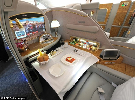 Tất cả khoang hạng nhất đều có minibar ở chỗ tựa tay và buồng tắm riêng với sàn sưởi ấm. Chính vì vậy, để có cặp vé khứ hồi, bạn phải chi trả lên tới 30.000 USD (673 triệu đồng). Đúng là tiền nào của nấy!
