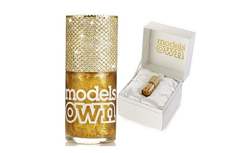 Sơn móng tay là một loại mĩ phẩm có trên bàn trang điểm của các chị em. Thế nhưng, không phải ai cũng có điều kiện để chạm vào lọ sơn móng tay chứa bột vàng 24 karat. Giá tiền của mỗi lọ Gold Rush Couture của Models Own còn tăng lên khi vỏ được làm thủ công và nạm với 1.118 viên kim cương.
