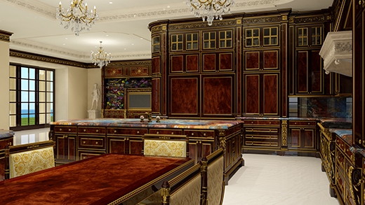 Đại gia là phải sống trong biệt thự nhưng một ngôi biệt thự dát vàng lại là một chuyện không hề thường chút nào. Biệt thự Le Palais Royal ở Florida mang đúng tiêu chuẩn hoàng gia. Để hoàn thiện biệt thự rộng 5.500m2, việc trang trí được thực hiện bởi các thợ thủ công Pháp và mất hàng tháng.
