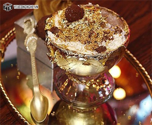 Món kem này được mệnh danh là 1 trong những món tráng miệng đắt tiền nhất thế giới. Được phủ vàng lá 23 karat, đựng trong cốc pha lê Baccarat 350 USD (7,7 triệu đồng), đi kèm vàng 18 karat và rải trứng muối lên trên, món ăn này khiến nhiều người chỉ dám nhìn chứ không dám ăn.