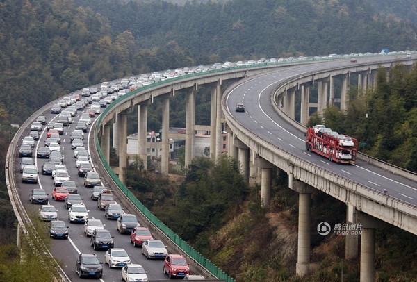 Trưa ngày 25/2, nhân dịp ngày cuối cùng không thu thuế đường bộ, hàng vạn chiếc ô tô đã kéo nhau vào thành phố Bắc Kinh. Sự việc khiến con đường cao tốc của thành phố ùn tắc hơn 10km.