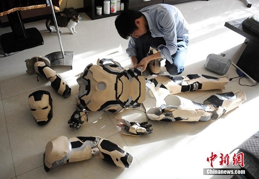 Tổ Bỉnh Quần đã thử mặc trang phục của Người Sắt, sau đó cậu tiến hành hoàn thiện sản phẩm với việc thay đổi sang sơn màu trắng.