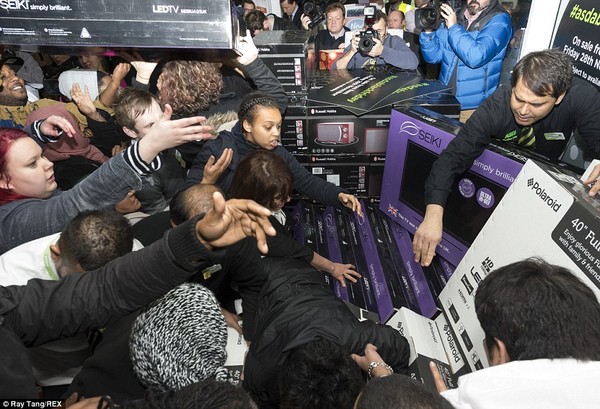 Cảnh tượng nhiều khách hàng bò lăn ra đất để ôm, giằng đồ trong ngày Black Friday tại Anh khiến nhiều người vô cùng ngạc nhiên.