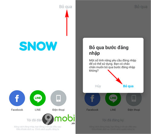 Tại đây các bạn có thể lựa chọn các phương thức đăng nhập khác nhau như bằng Facebook, Line chat hay số điện thoại. Hoặc ấn chọn mục Bỏ qua như trong bài viết này.