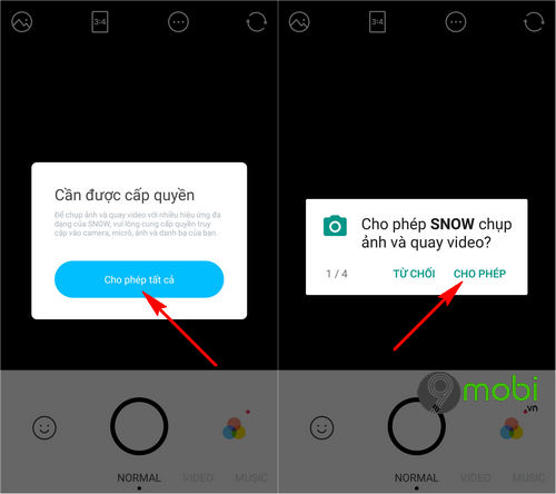 Bước 2 : Sau đó, để có thể sử dụng Snow chụp ảnh xoá phông trên Android, iPhone các bạn sẽ cần phải chấp nhận các yêu cầu truy cập vào hệ thống thiết bị bằng cách ấn chọn mục Cho phép tất cả .