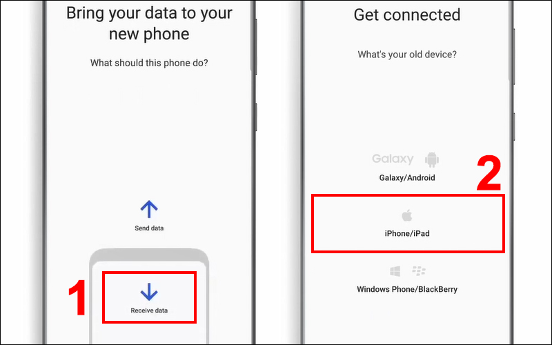Bước 4: Chọn Receive data (Nhận dữ liệu) > Chọn mục iPhone/iPad.