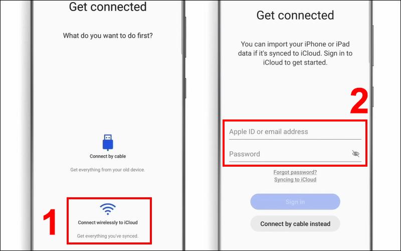 Bước 5: Chọn mục Connect Wirelessly to iCloud (Kết nối không dây với iCloud) > Đăng nhập tài khoản iCloud của bạn.