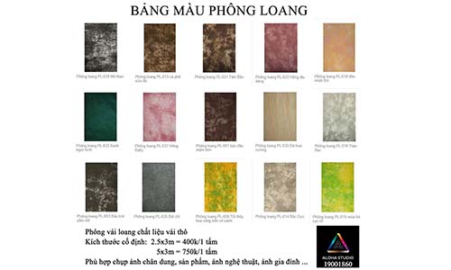 - Phông loang là phông dạng vải mềm, được nhuộm màu loang với các khoảng màu sáng tối khác nhau, chất liệu vải hơi cứng cho phép bạn là phẳng hoặc tạo độ nhăn theo ý muốn.