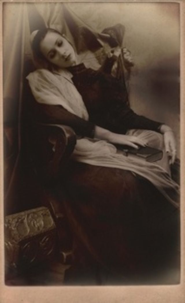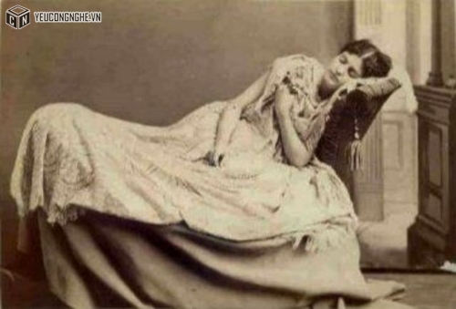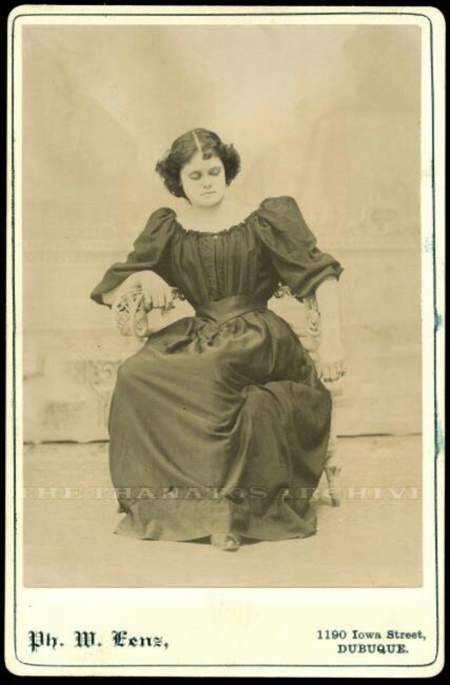 Thông thường, để có bức hình tự nhiên hơn, người ta sẽ để mắt của người chết vẫn mở. Bức hình dưới đây được chụp ngay sau khi cô gái qua đời: