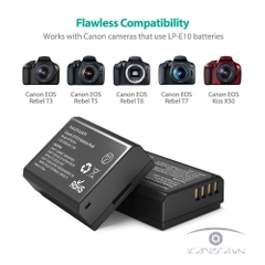 - Pin máy ảnh RAVPower RP-BC014 giống hệt với pin Canon LP-E10, tương thích 100% với các mẫu máy ảnh Canon EOS Rebel T3, T5, T6, T7, Kiss x50, Kiss x70, EOS 1100D, EOS 1200D, EOS 1300D,...