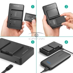 - Bạn chỉ cần 3 giờ để sạc lại đồng thời cả hai pin với đầu vào micro-USB 5V / 2A, sử dụng sạc tường, tẩu sạc xe hơi hay pin sạc dự phòng để sạc lại cho pin. Ngoài ra bạn cũng có thể sạc trực tiếp pin bên trong máy ảnh.