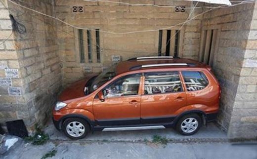 Chỗ đậu xe “bá đạo” và chiếc xe vào được cũng “bá đạo” không kém.