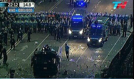 Nhằm kiểm soát tình hình, cảnh sát chống bạo động Argentina đã sử dụng vòi rồng và hơi cay để giải tán đám đông. Cảnh sát bắt giữ ít nhất 30 người vì những hành vi gây rối. |