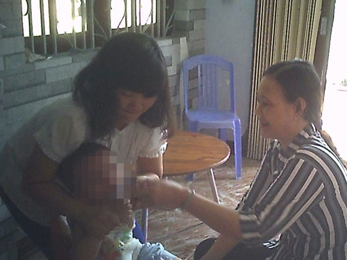 Bảo mẫu Nga và cô Lan đang ép cho Danh Phương ăn bún gạo