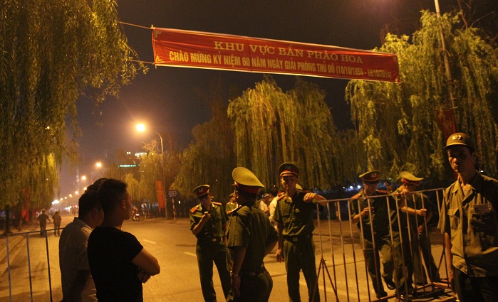 Đúng 19h00, lực lượng an ninh bắt đầu phong tỏa khu vực bắn pháo hoa.