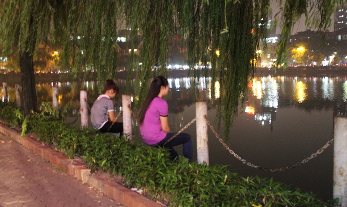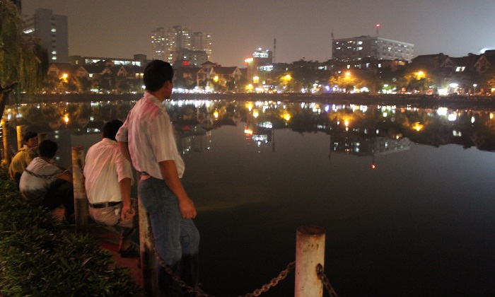 Không chỉ các bạn trẻ, nhiều người lớn tuổi cũng ra hồ đứng ngóng từ rất sớm.