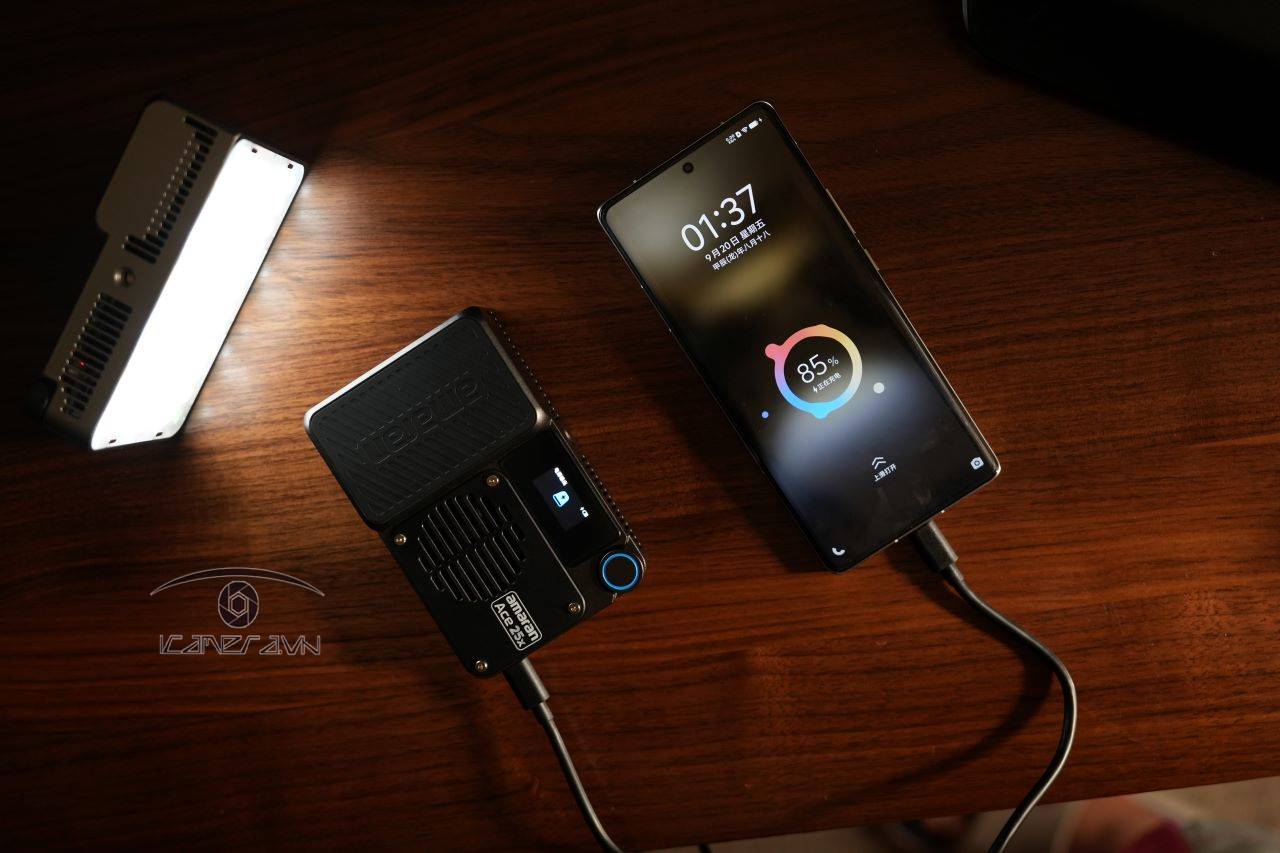 -Thời lượng pin dài để chụp liên tục. Với thời gian chạy lên đến 4 giờ 40 phút ở Chế độ im lặng và 70 phút ở Chế độ Tiêu chuẩn, hãy tự tin sáng tạo khi biết rằng nội dung của bạn sẽ được chiếu sáng tốt trong suốt quá trình chụp. Và với thời gian sạc nhanh 40 phút từ 0-90%, bạn sẽ dành ít thời gian chờ đợi hơn và nhiều thời gian hơn để tạo ra. Đối với các tình huống nguồn điện khẩn cấp, amaran Ace 25x cũng có thể hoạt động như một nguồn sạc ngược để giữ cho các thiết bị khác hoạt động.