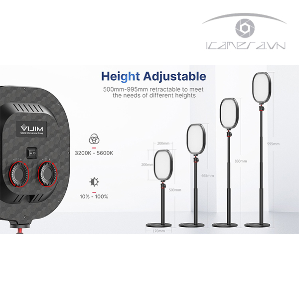 Thanh đỡ ánh sáng có thể điều chỉnh với 4 mức điều chỉnh độ cao từ 50cm đến 99,5cm, thỏa mãn nhu cầu sử dụng của bạn trong những dịp khác nhau. Với đầu bóng xoay, dễ dàng và thuận tiện để điều chỉnh các góc chiếu sáng cần thiết; cũng có thiết kế vít 1/4 inch để gắn kẹp điện thoại và máy ảnh.