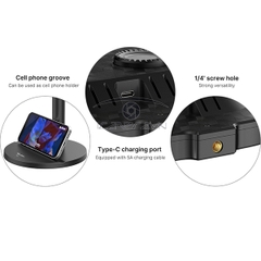 Thiết kế chi tiết đặc biệt để sử dụng thuận tiện hơn: rãnh trên đế để đặt điện thoại, nguồn điện USB type-c tiện lợi, lỗ vặn 1/4 inch để gắn vào giá đỡ đèn, chân máy, và nhiều hơn nữa, linh hoạt khi sử dụng.