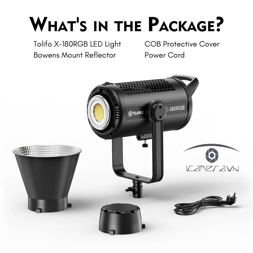 - Tolifo X-180RGB 180W là dòng đèn led thay đổi 360 màu Đèn LED chụp ảnh video RGB chuyên nghiệp 2700K-6500K Đèn phim studio hạt COB với Điều khiển DMX qua ứng dụng, CRI97+, 20 hiệu ứng cùng rất nhiều tính năng độc đáo khác