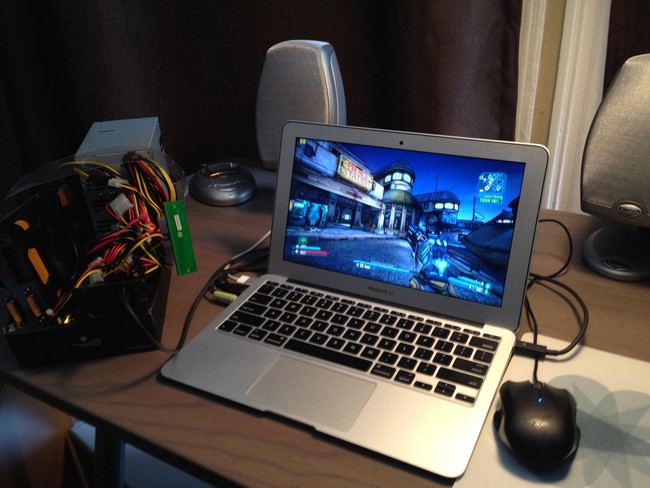 Trong bài viết của anh tại diễn đàn có đăng tải chi tiết tốc độ khung hình và điểm chuẩn của nhiều tựa game khủng khi thử nghiệm. Kết quả cho thấy trong những thử nghiệm hiệu suất mang lại thông qua card đồ họa rời gấp gần 7 lần so với card Intel HD 5000 tích hợp. Một lưu ý nữa là mặc dù phải sử dụng Boot Camp để chạy Windows vì do yêu cầu của chương trình điều khiển card đồ họa nhưng việc chơi game trên MacBook Air là hoàn toàn khả thi.
