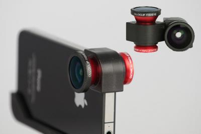 Olloclip là bộ lens ba trong một bao gồm: ống mắt cá, ống góc rộng và ống macro. Hệ thống lens này được gắn với một cạnh của iPhone và không tương thích với các loại case hay bảo vệ màn hình nào khác. Olliclip có giá bán 70 USD và có hai phiên bản đỏ, đen.