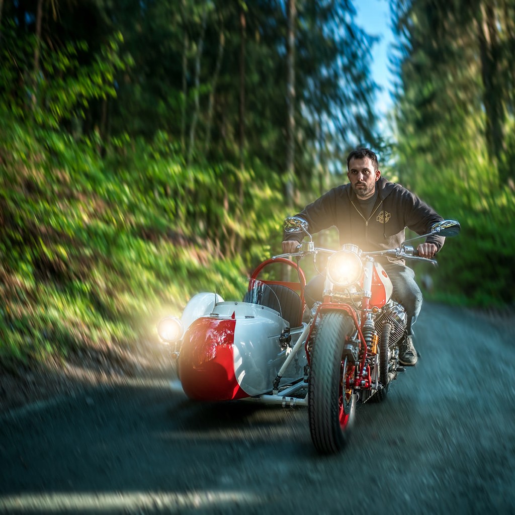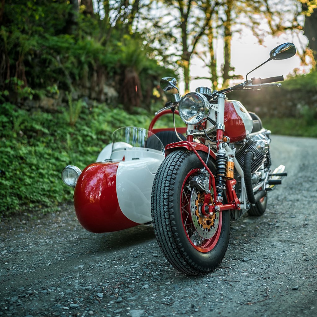 Những người thợ đã biến chiếc Moto Guzzi tuổi đời hơn 40 năm thành chiếc xe hoàn toàn mới mang kiểu dáng sidecar. Trên xe gắn nhiều đồ chơi như phanh Brembo, phuộc Ohlins.