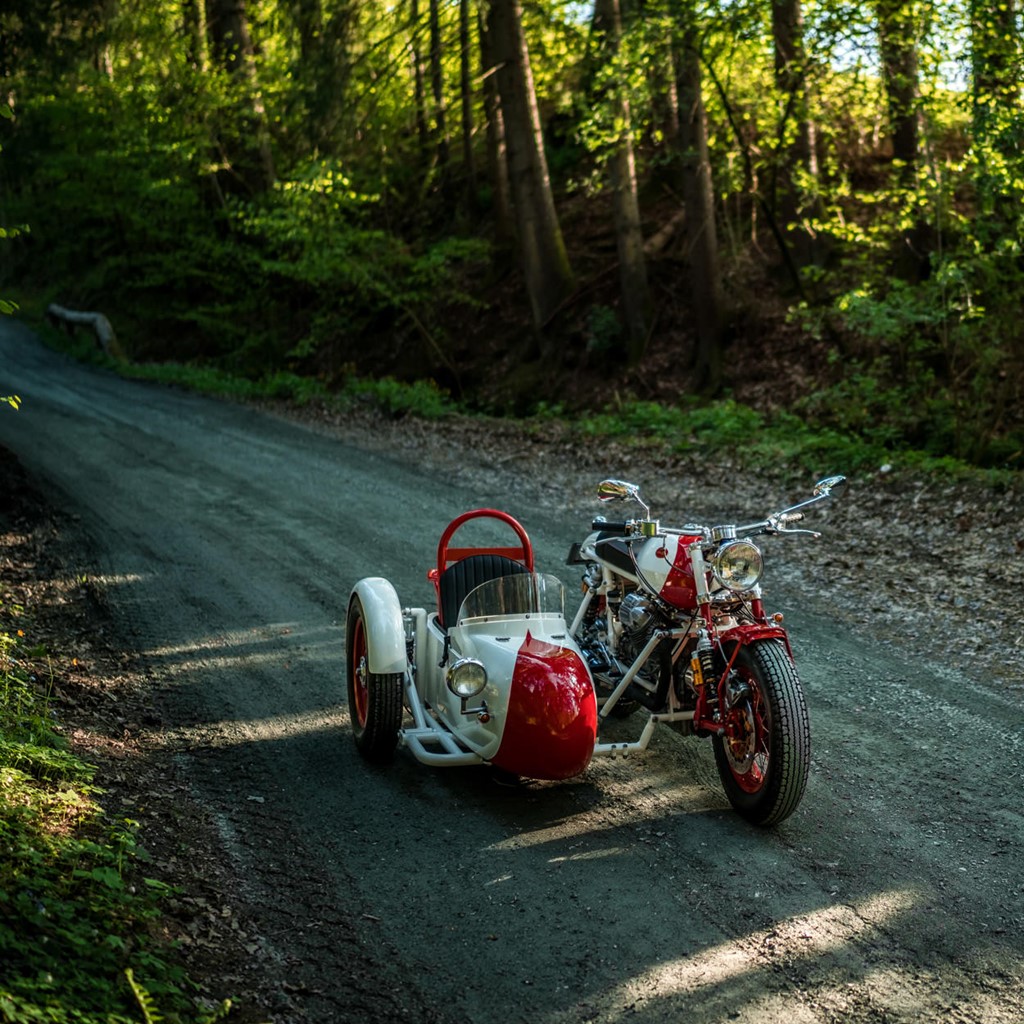 Chiếc Moto Guzz đời 1975 trước đây đã từng độ một lần nhưng chủ xe không ưng ý. Vì vậy, sau khi về tay NCT, những người thợ của hãng đã có chủ trương biến chiếc xe hai bánh thành sidecar 3 bánh. Chắn bùn được độ lại, và dàn đầu phía trước được chỉnh sửa hoàn toàn. Phần thân xe được xây dựng lại.