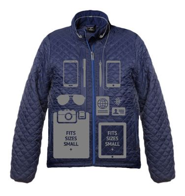 Được thiết kế dành cho cả nam và nữ, bên trong chiếc áo khoác trị giá 215 USD còn có 1 chiếc túi có thể đựng một chiếc tablet cỡ lớn, một ngăn chứa thẻ tín dụng/visa,... có khả năng chặn nhận dạng tần số vô tuyến (RFID) giúp người dùng tránh việc bị đánh cắp thông tin thẻ khi đi qua các thiết bị quét thẻ từ, và 2 chiếc túi trong suốt cho phép bạn tương tác với màn hình cảm ứng của điện thoại.