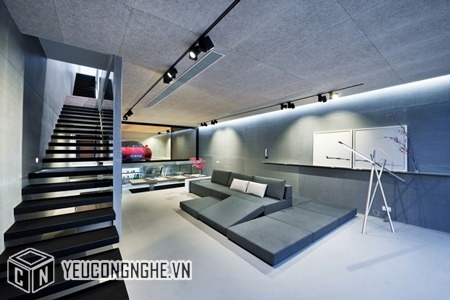Theo đó, các kiến trúc sư đã quyết định cho sửa sang lại toàn bộ ngôi nhà, kết quả là họ đã tạo ra một không gian nội thất cực kỳ hiện đại, tiện nghi, sang trọng với "nhân vật chính" là một chiếc Ferrari màu đỏ nằm nổi bật giữa căn phòng, tạo nên cảm giác xa hoa, lộng lẫy, độc đáo và đẳng cấp.