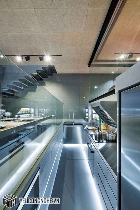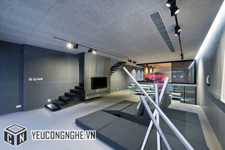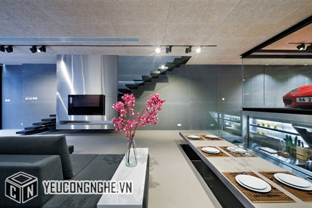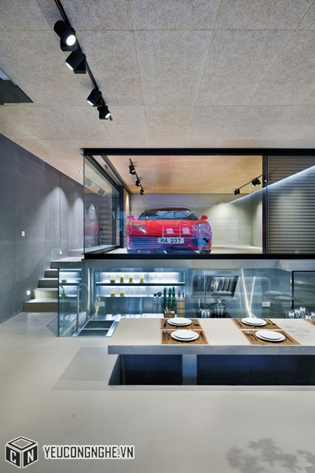 Ngoài việc sử dụng chiếc Ferrari của chủ nhà như một "vật trang trí" chính cho ngôi nhà, đội ngũ thiết kế của Millimeter Interior Design còn tạo ra một loạt các thay đổi ấn tượng khác như một chiếc bàn ăn có thể thay đổi chiều cao hay nhà bếp ở tầng hầm.