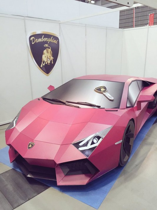 Chính vì vậy, một nhóm nhân viên công ty đóng gói Konno Konpou tại thành phố Ishinomaki, khu Miyagi, Nhật Bản, đã dành 6 tháng ròng để cho ra đời một chiếc “Damborghini” bằng giấy từ 500 tấm bìa các-tông. Và tất nhiên, nếu bạn nhìn… từ xa, thì bạn sẽ chẳng thể nào phân biệt nổi chiếc Damborghini này với siêu xe Lamborghini nửa triệu USD đình đám.
