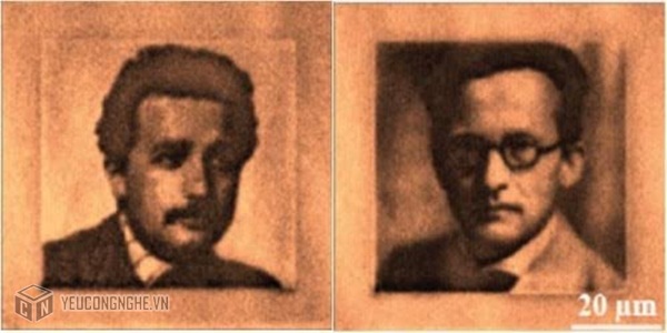 Ảnh hai nhà vật lý Einstein và Schoerdinger được mã hóa và lưu trữ lên kim cương.