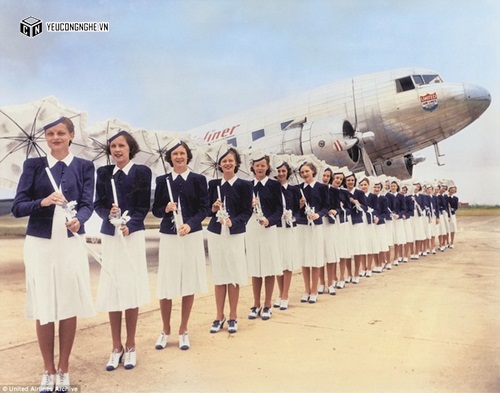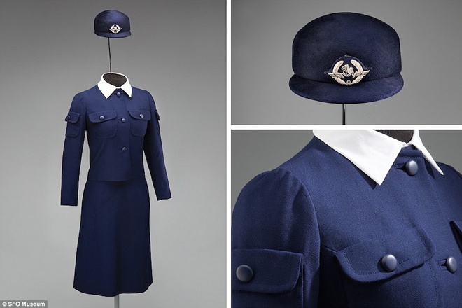 Đồng phục tiếp viên hàng không trong 85 năm qua đang được trưng bày tại triển lãm ở sân bay quốc tế San Francisco, Mỹ. Tại đây tập hợp hơn 70 mẫu thiết kế tạo nên từ những tên tuổi hàng đầu thế giới như Dior, Yves Saint Laurent và Vivienne Westwood. Trong hình là đồng phục của hãng United Airlines chụp năm 1939 với mũ đội lệch và áo jacket, lấy cảm hứng từ y tá và quân đội.