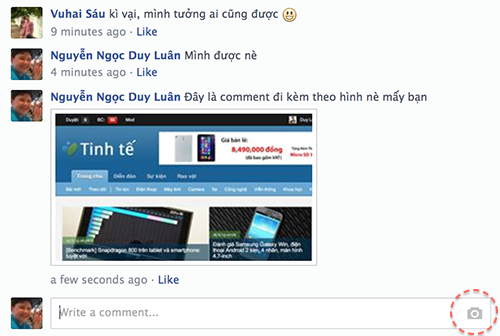 Bắt đầu từ tối hôm qua và sáng nay, nhiều người dùng Facebook đã thấy biểu tượng chiếc máy ảnh lạ xuất hiện ở ô comment. Đây là tính năng mới cho phép chúng ta đính kèm hình ảnh vào trực tiếp ngay trong lời bình luận. Nó giúp chúng ta chia sẻ ảnh thông qua comment một cách nhanh chóng, không cần phải upload hình ở nơi khác rồi dán đường link qua như trước đây.