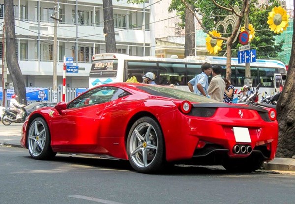 Một chiếc Ferrari 458 Italia màu đỏ xuất hiện trước Nhà Văn hóa Thanh niên TP HCM dịp cuối tuần thu hút sự chú ý của người đi đường. Chủ nhân của nó là thiếu gia khá nổi tiếng sống tại TP HCM, hoạt động trong lĩnh vực thương mại. 458 Italia là siêu xe được nhiều thiếu gia Việt ưa chuộng. Việt Nam hiện có khoảng 10 chiếc xe loại này, chủ yếu mang màu đỏ truyền thống của Ferrari.