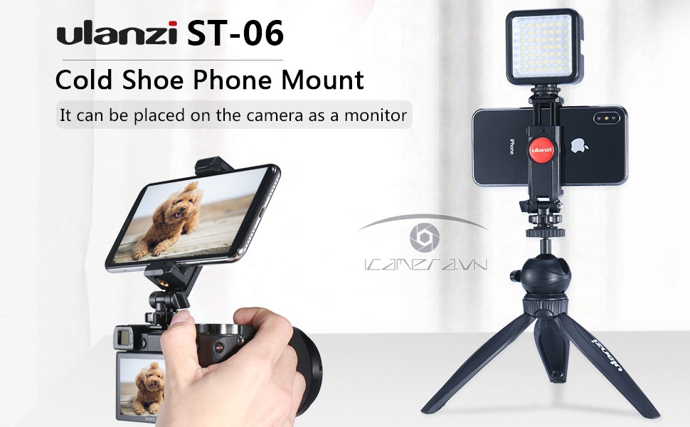 ST-06 vừa vặn với mọi loại smartphone dù có hay không dùng ốp lưng, làm việc được với các ốp lưng kích thước lớn, cồng kềnh, kháng thời tiết. Trên giá lắp này có nhiều vị trí lắp phụ kiện để bạn có thể gắn tùy ý trên bất kỳ tripod, monopod, gậy selfie hay các thiết bị quay phim nào khác có trang bị ốc phụ kiện 1/4"-20.