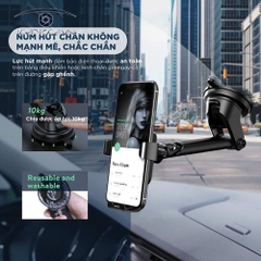 - Lực hút mạnh đảm bảo điện thoại được an toàn trên bảng điều khiển hoặc kính chắn gió ngay cả trên đường gập ghềnh.
