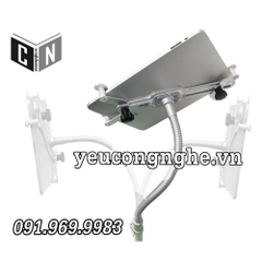 - Phần đỡ iPad, máy tính bảng có thể điều chỉnh theo kích thước các dòng tablet từ 5" - 11", có thể xoay 360 độ