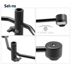 Với dụng cụ hỗ trợ từ tính Selens được đặt phía trên của đinh tán 5/8 " thường được tìm thấy trên giá đỡ đèn (hoặc nền) và nút căng được thắt chặt, sản phẩm sẽ hỗ trợ cho phông nền của bạn. Chỉ cần nâng nền để cạnh của chúng tiếp xúc với các nam châm, bạn sẽ nghe thấy tiếng "bụp" khi tiếp xúc xảy ra. Với giá đỡ được gấp lại và các bộ phận tháo rời, phông nền của bạn có thể được thiết lập trong thời gian chỉ 30 giây.