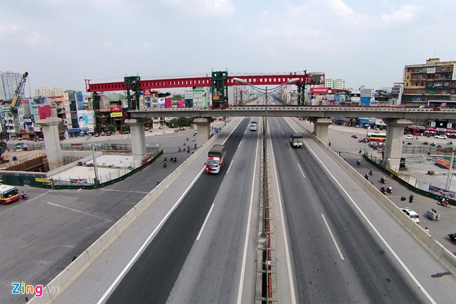 Tầng giao thông trên cùng là dự án đường sắt Cát Linh - Hà Đông dài 13 km.