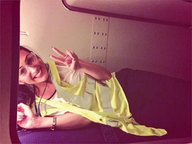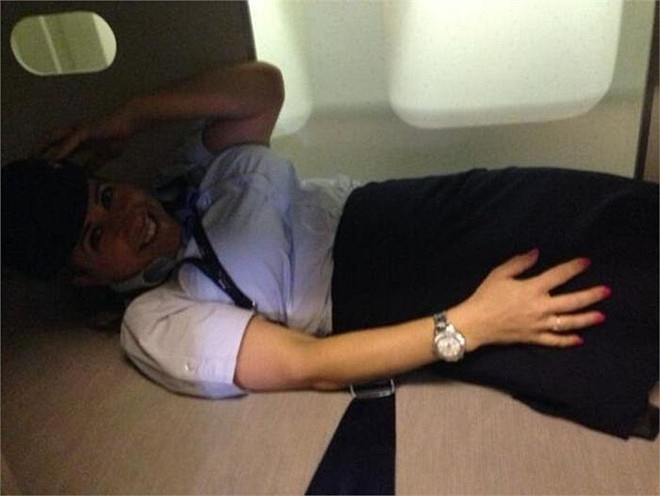 Thêm một hình ảnh nhí nhảnh của nữ tiếp viên hàng không trong khoang nghỉ dành riêng cho phi hành đoàn.